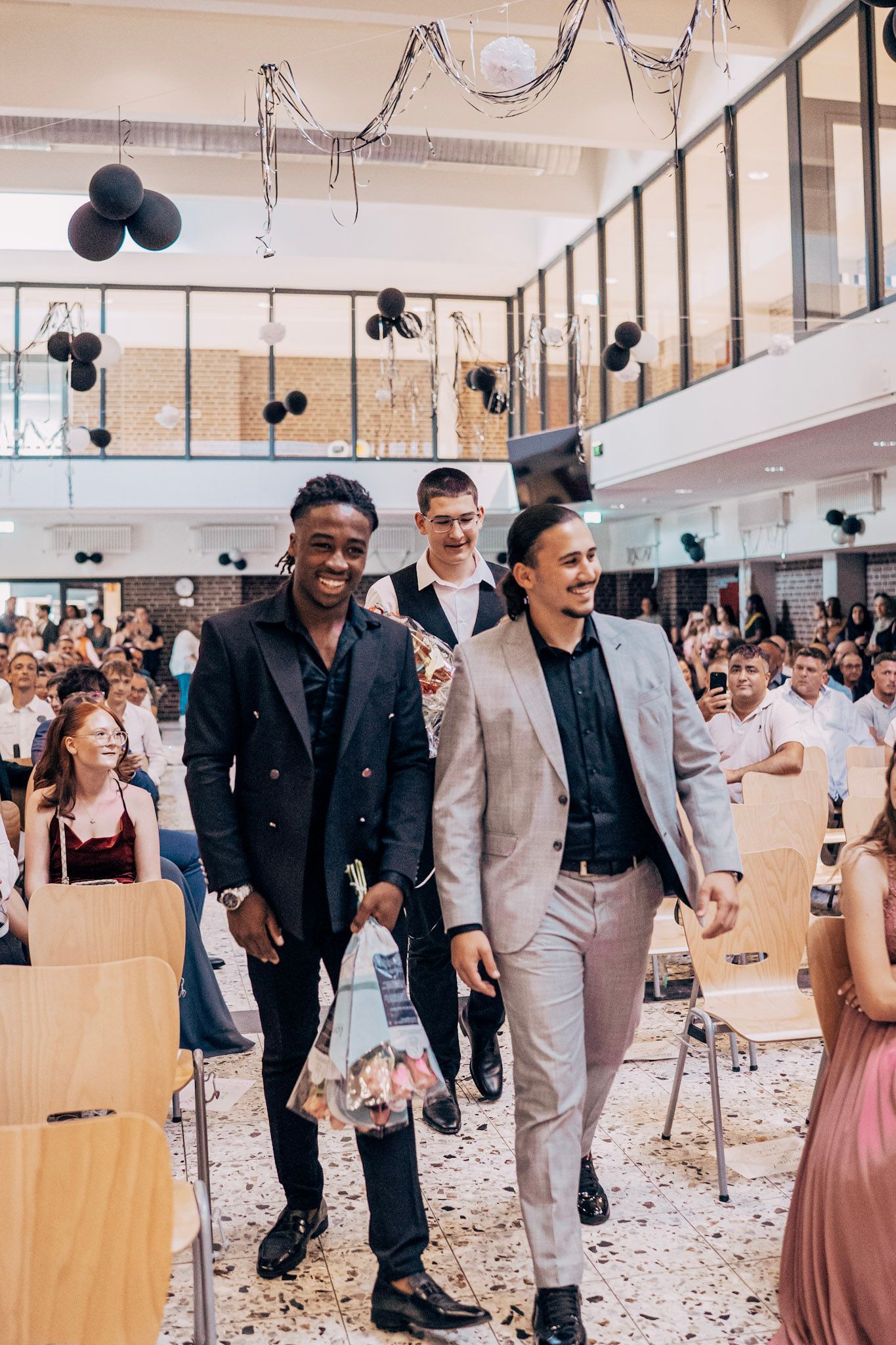 Die Schülerinnen und Schüler bedankten sich in einer gelungenen Abschlussrede vom professionellen Moderationsteam Arda und Zoe, unterstützt von Aida und dem Geschenketeam bei allen Menschen aus der KuGesa-Familie, die sie so gut unterstützt hatten: Den Schulsekretärinnen, dem Hausmeisterteams, der Schulleitung und natürlich besonders bei ihren Klassenleitungen.