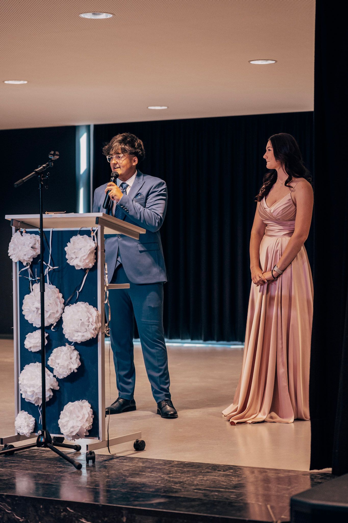 Diese für sich selbst und auch für die Gesellschaft zu nutzen, dazu ermunterte der Ehrengast Bürgermeister Patrick Haas. In ihrem Video krönten die Schülerinnen und Schüler die Lehrerinnen und Lehrer: die Liebste, der Coolste und der Kollege mit der fragwürdigsten Tafelschrift. Natürlich blieb Selbiges auf Seiten der Klassenleitung nicht verborgen. Diese offenbarten, wer am häufigsten zu spät kam und am meisten nervte und dennoch endete das Video der Klassenleitungen mit guten Wünschen für alle.