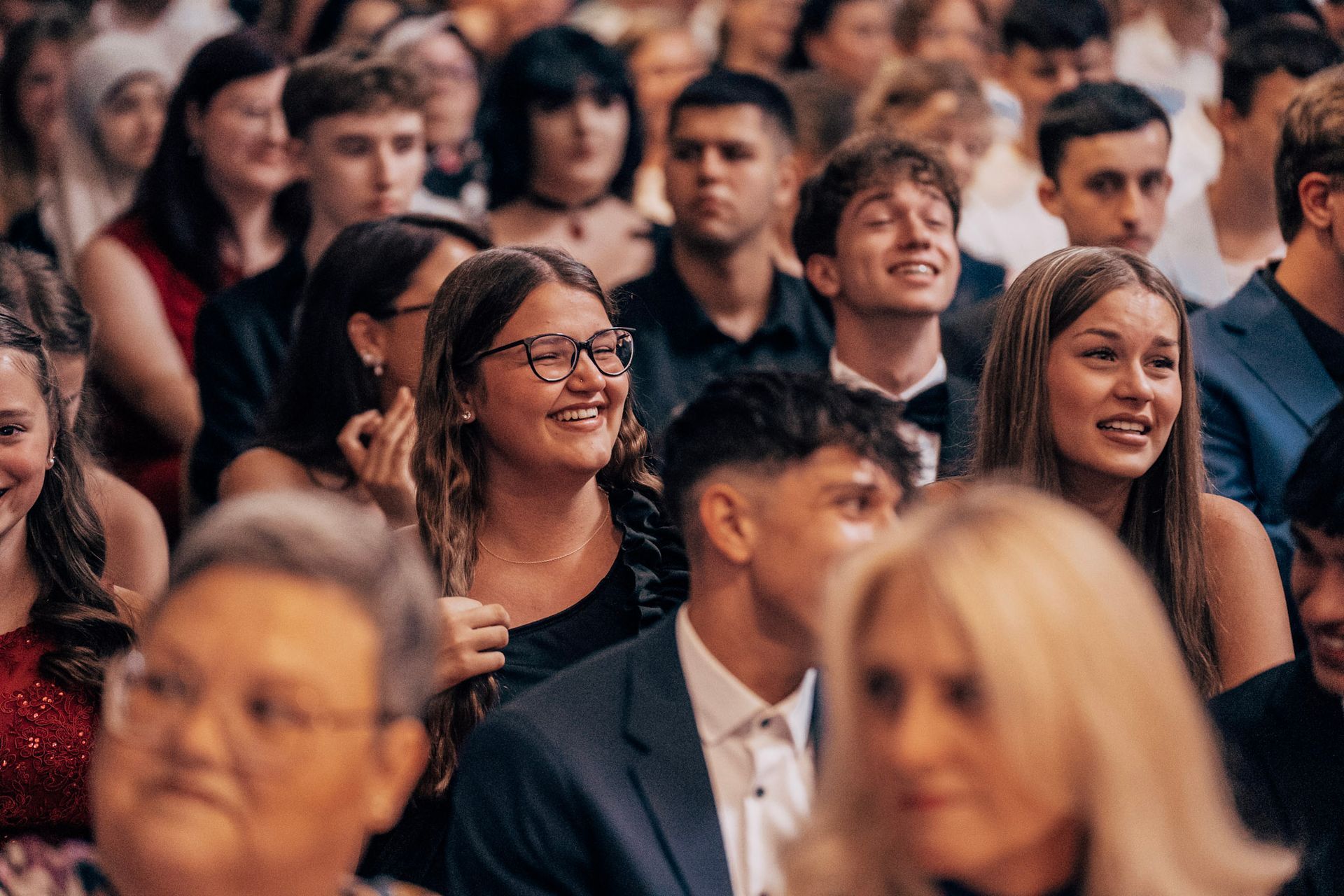 Am 04.07.2025 trafen sich in der stilvoll geschmückten Aula die toll herausgeputzten Schülerinnen und Schüler der KuGesa samt Begleitung. Herr Klein und natürlich alle Begleiterinnen und Begleiter, sowohl aus dem privaten als auch dem schulischen Kontext, sind enorm stolz auf das, was dieser Jahrgang – unser erster, der in Mausbauch auch eingeschult worden ist - geschafft hat!